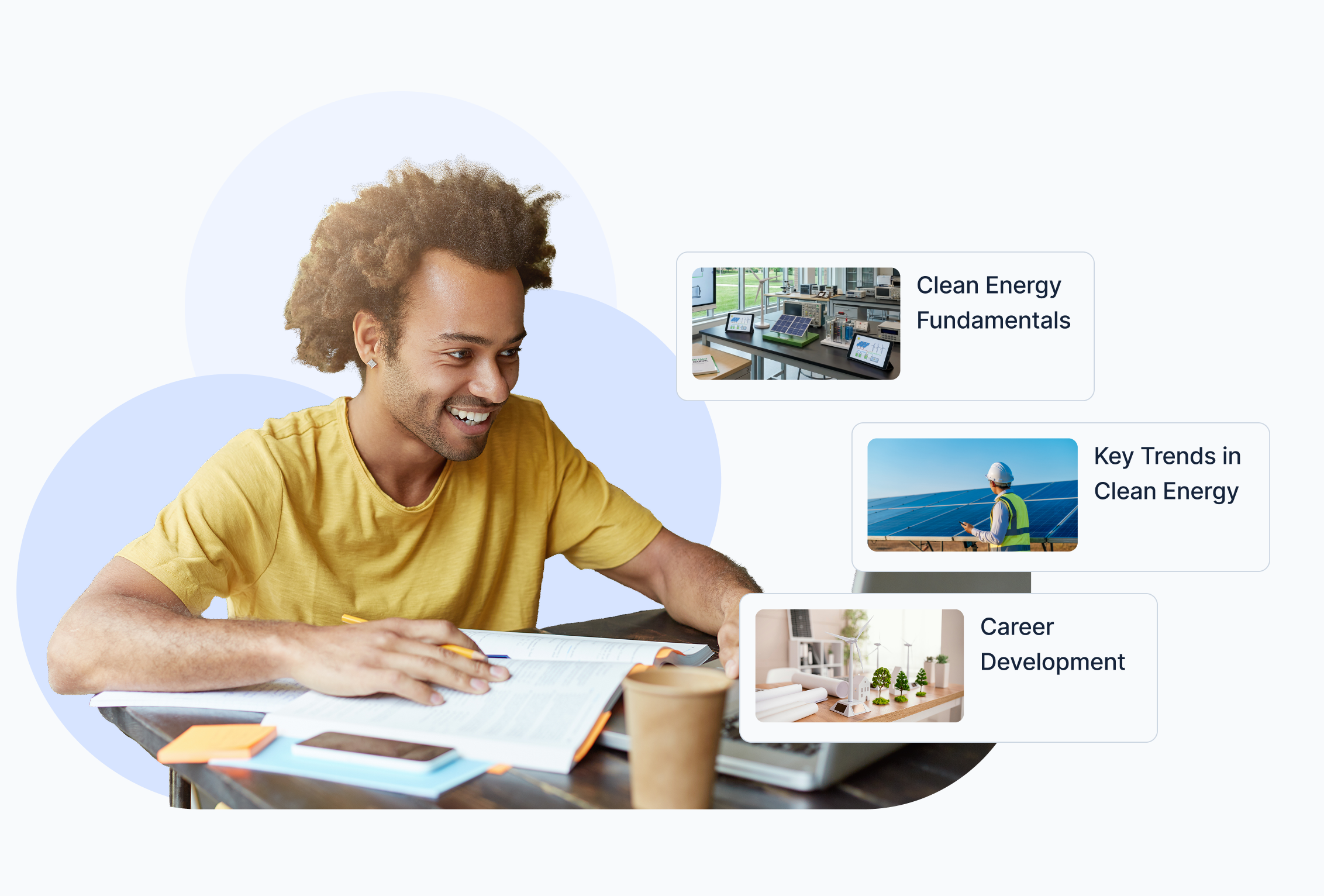 By taking curated courses across clean energy fundamentals, technology, and workplace readiness, you can gain the knowledge and skills needed to explore new roles and advance in the clean energy industry.